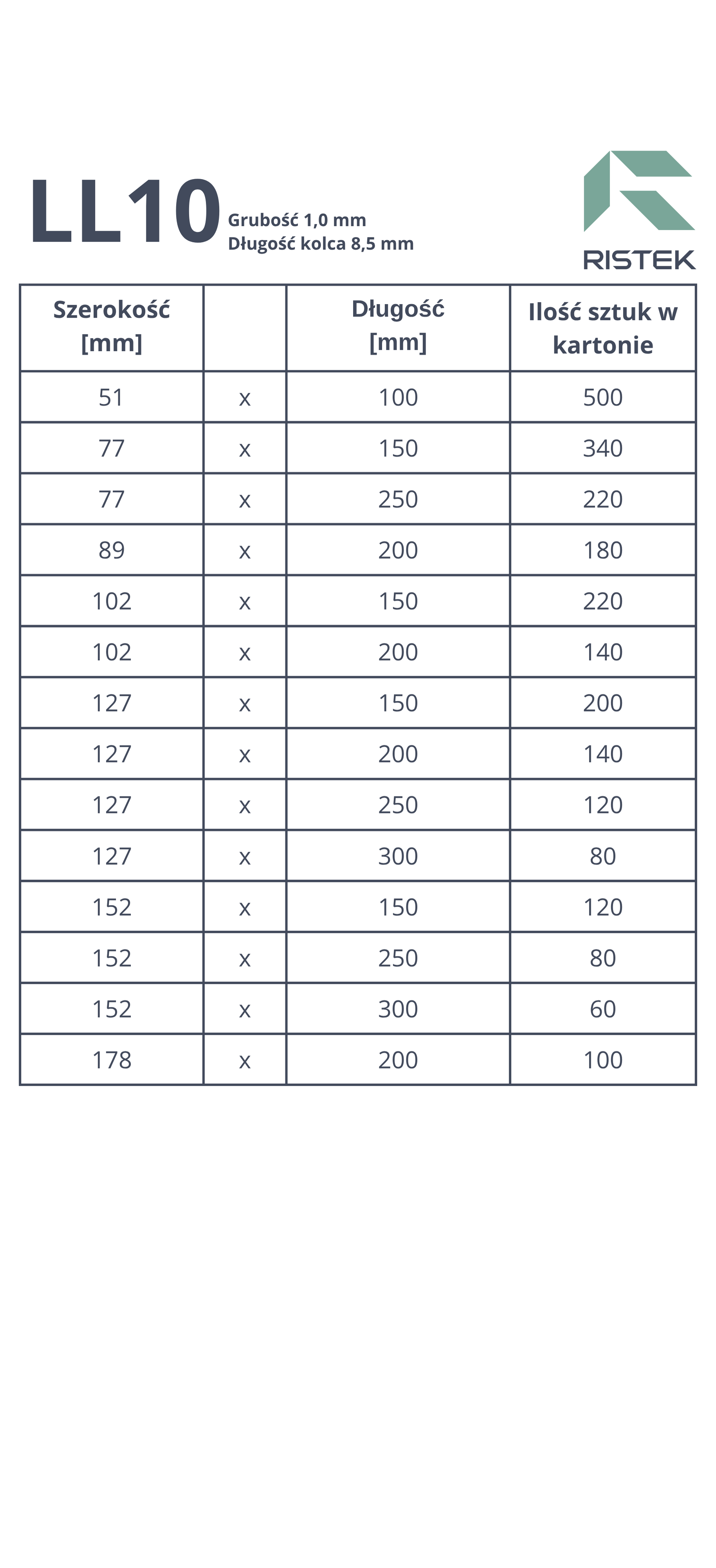 - Płaskie łączniki ciesielskie LL10 (grubość blachy 1,0 mm długość kolca 8,5 mm)