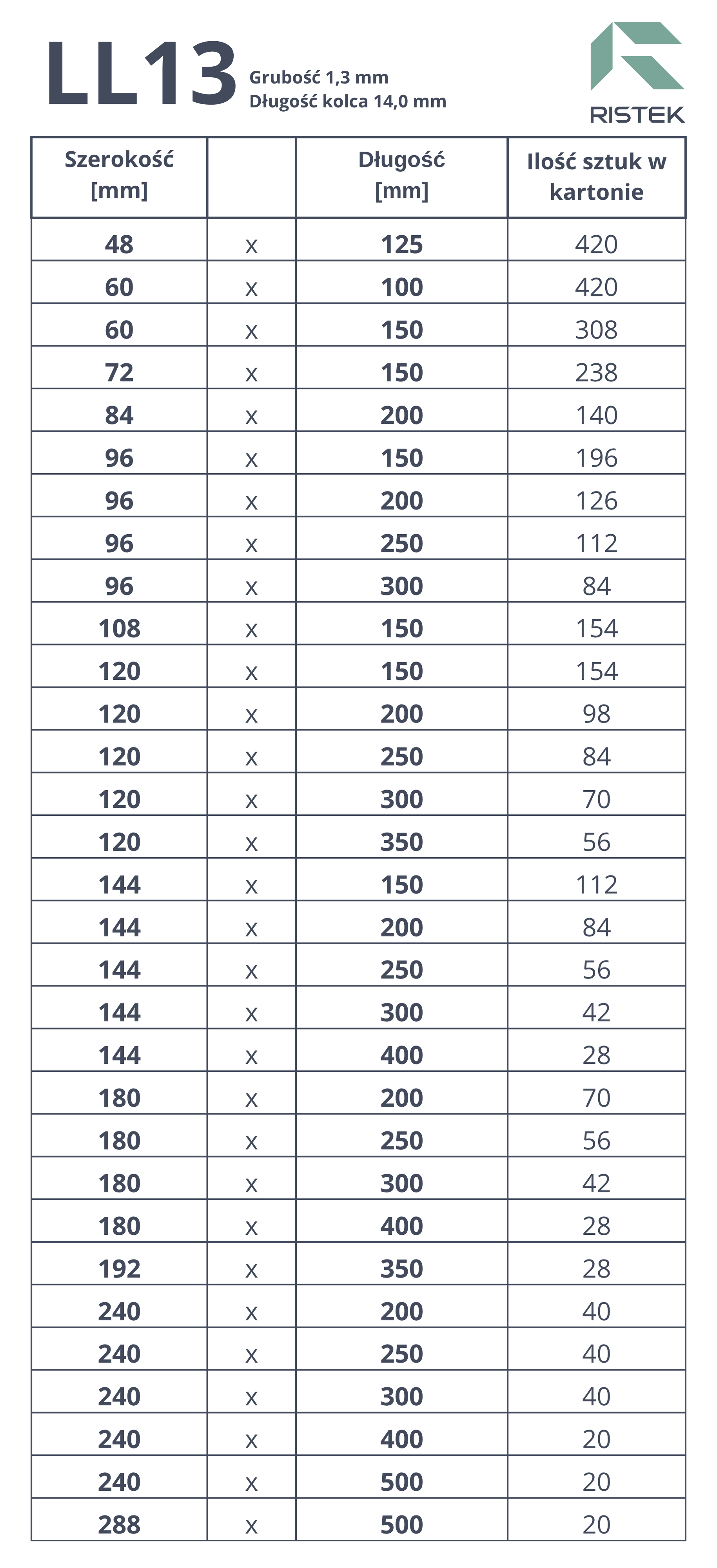 - Płaskie łączniki ciesielskie LL13 (grubość blachy 1,3 mm, długość kolca 14 mm (kolce choinkowe)